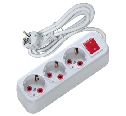 MULTIPRISE 3 P AVEC TERRE + INT / 3M (BLANC) -2GE-